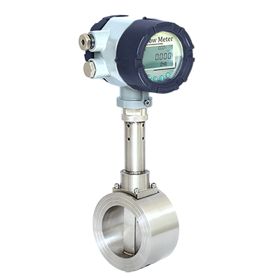 涡街流量计是由旋涡发生体、检测探头及相应的电子线路等组成。当流体流经旋涡发生体时,它的两侧就形成了交替变化的两排旋涡,这种旋涡被称为卡门涡街。斯特罗哈在卡门涡街理论的基础上又提出了卡门涡街的频率与流体的流速成正比,并给出了频率与流速的关系式: f = St × V/d